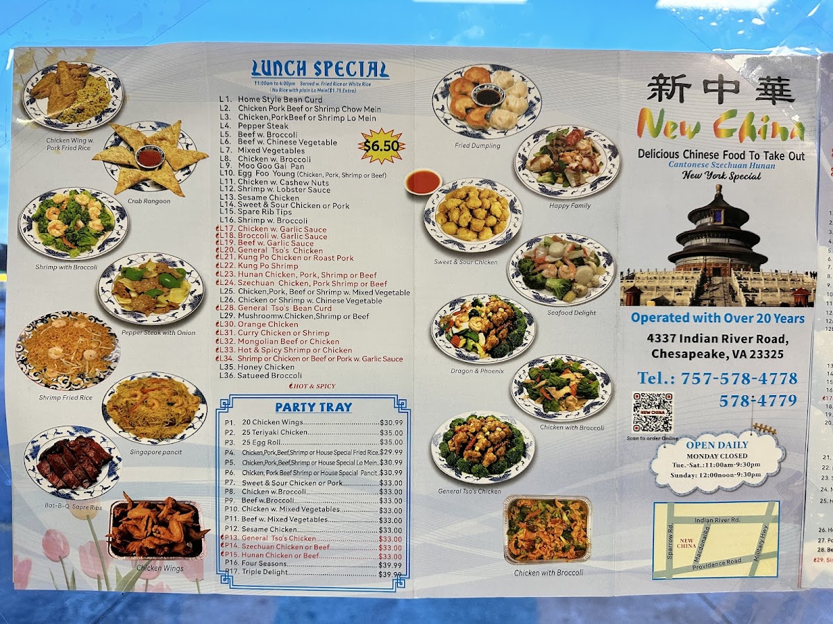 Customer reviews highlight the restaurant’s outstanding general tao's chicken and generous portions. While the service has been noted as focused and efficient, the staff warms up with familiarity. Overall, New China - Chesapeake delivers a satisfying dining experience with dishes that are both flavorful and well-portioned.